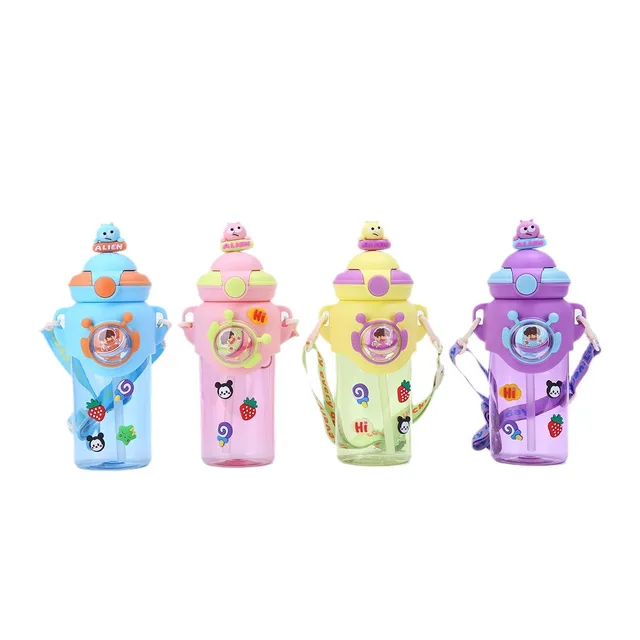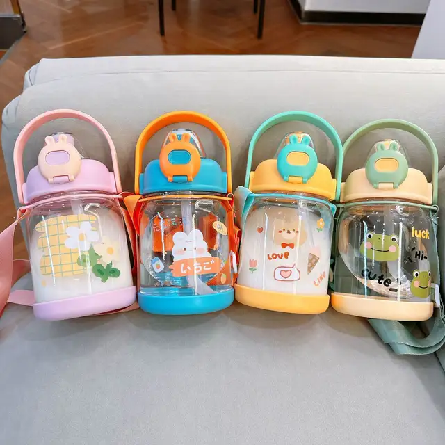 New High Quality 750ml Creative Cute Cartoon Plastic Water Bottle BPA Free Portable Children's Straw Drink Cup for Sports